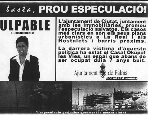 Davant del greu problema social en què s’ha convertit l’especulació a Mallorca, l’ocupació es converteix en una alternativa que la qüestiona directament i la nostra acció així ho ha posat en evidència. La realitat ens anima a pensar en nous actes de denúncia directa.